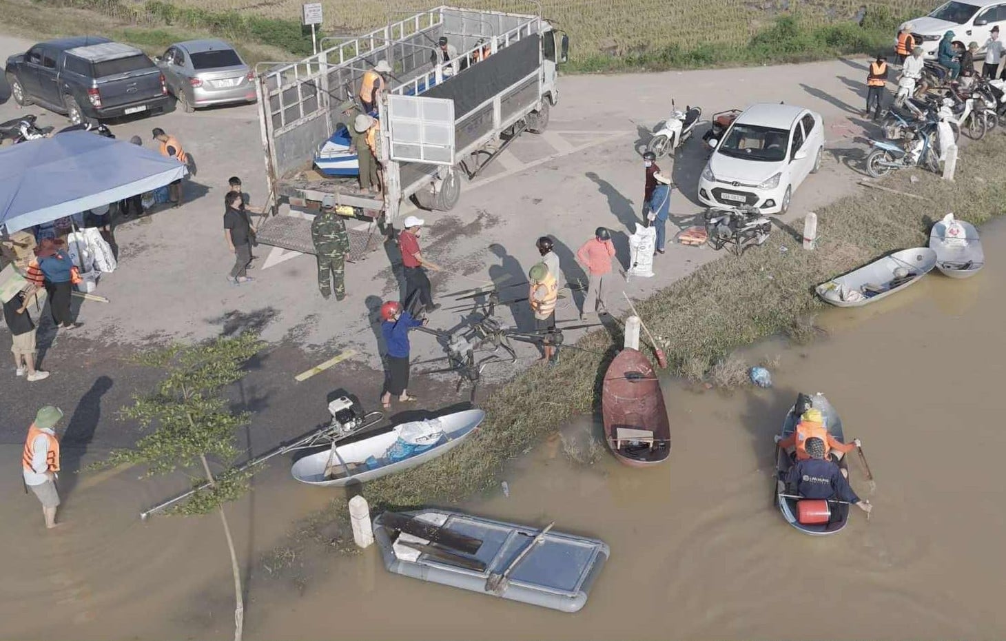 Nhóm drone kết hợp thuyền máy đã đưa hàng tấn đồ ăn, nước uống, thuốc men, đèn pin, sạc dự phòng… vào cứu trợ bà con vùng bị cô lập ở các tỉnh miền Bắc do bão số 10, 11 gây ra.